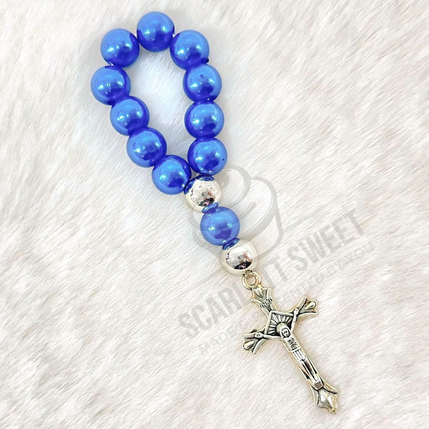 Finger rosary comes with cross, measures approx 8cm length. Each bead measures approx 8mm.