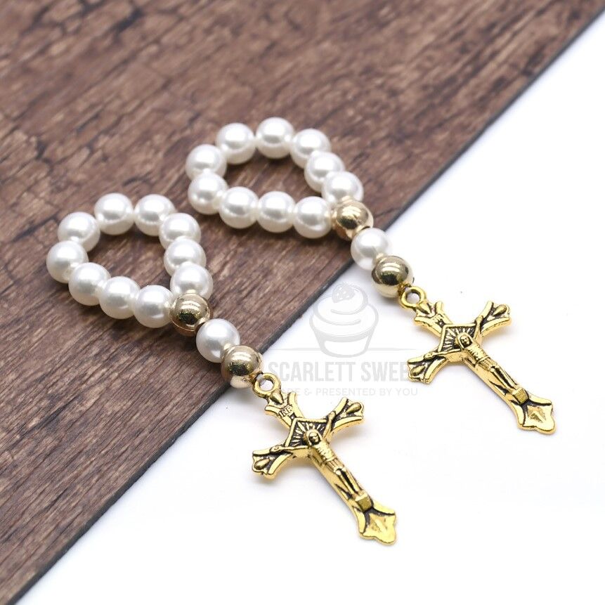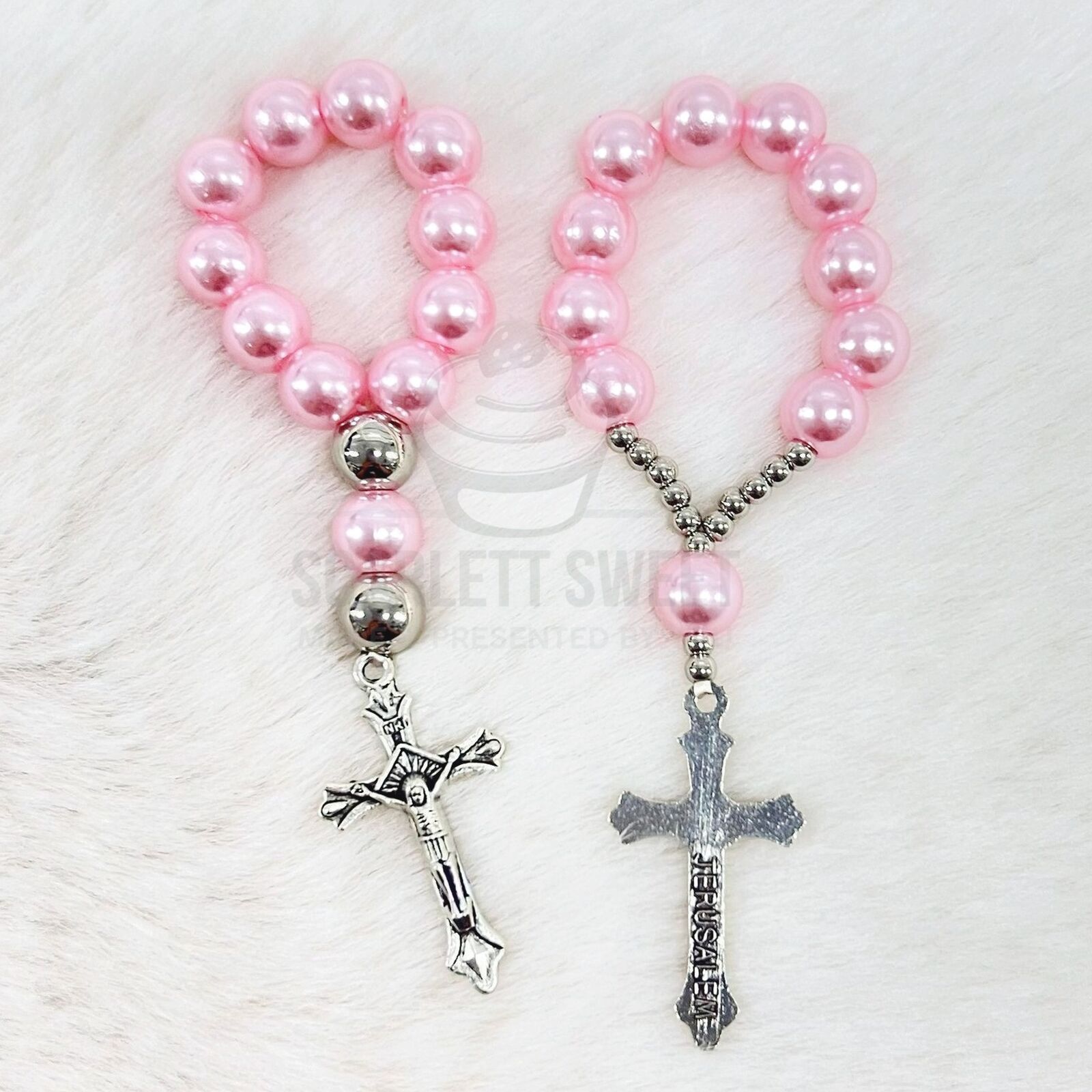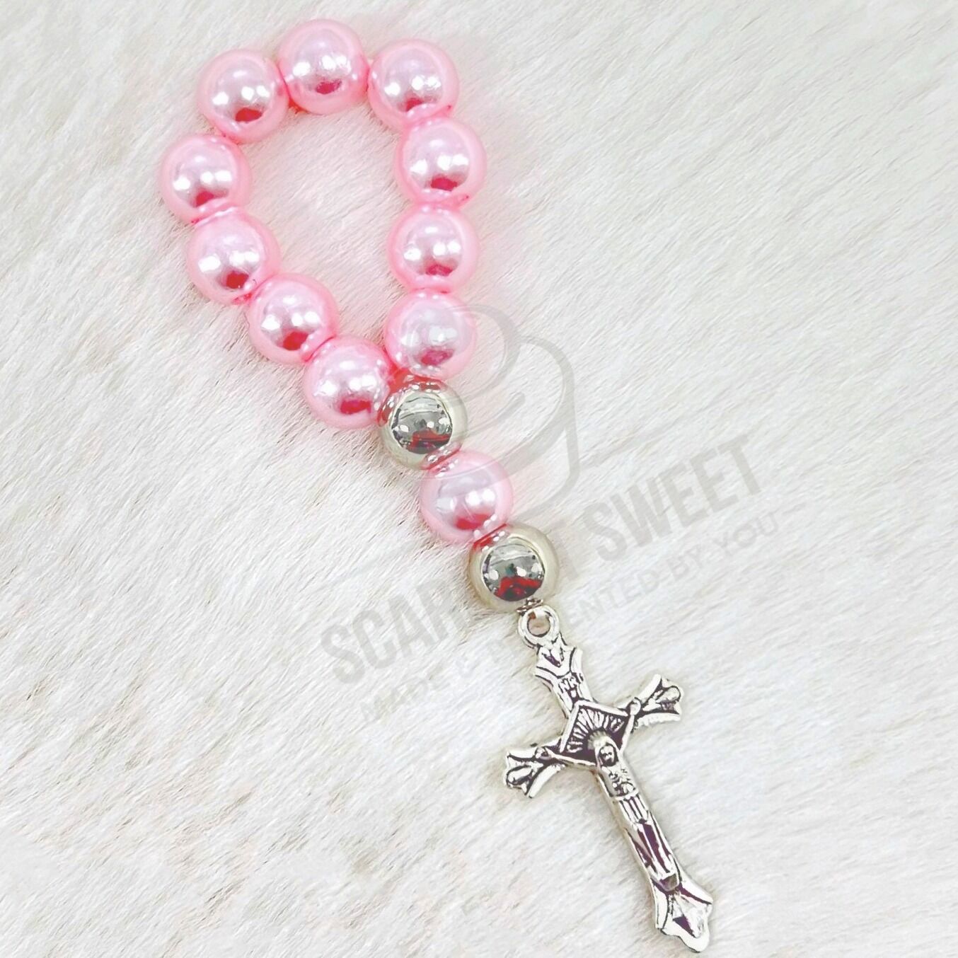 Finger rosary comes with cross, measures approx 8cm length. Each bead measures approx 8mm.