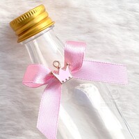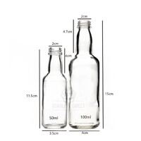 Glass bottle with aluminium screw lid measures approx 15cm tall by 4cm wide, 100ml volume.