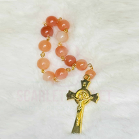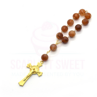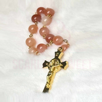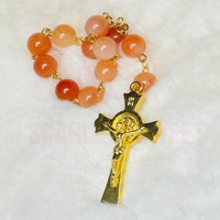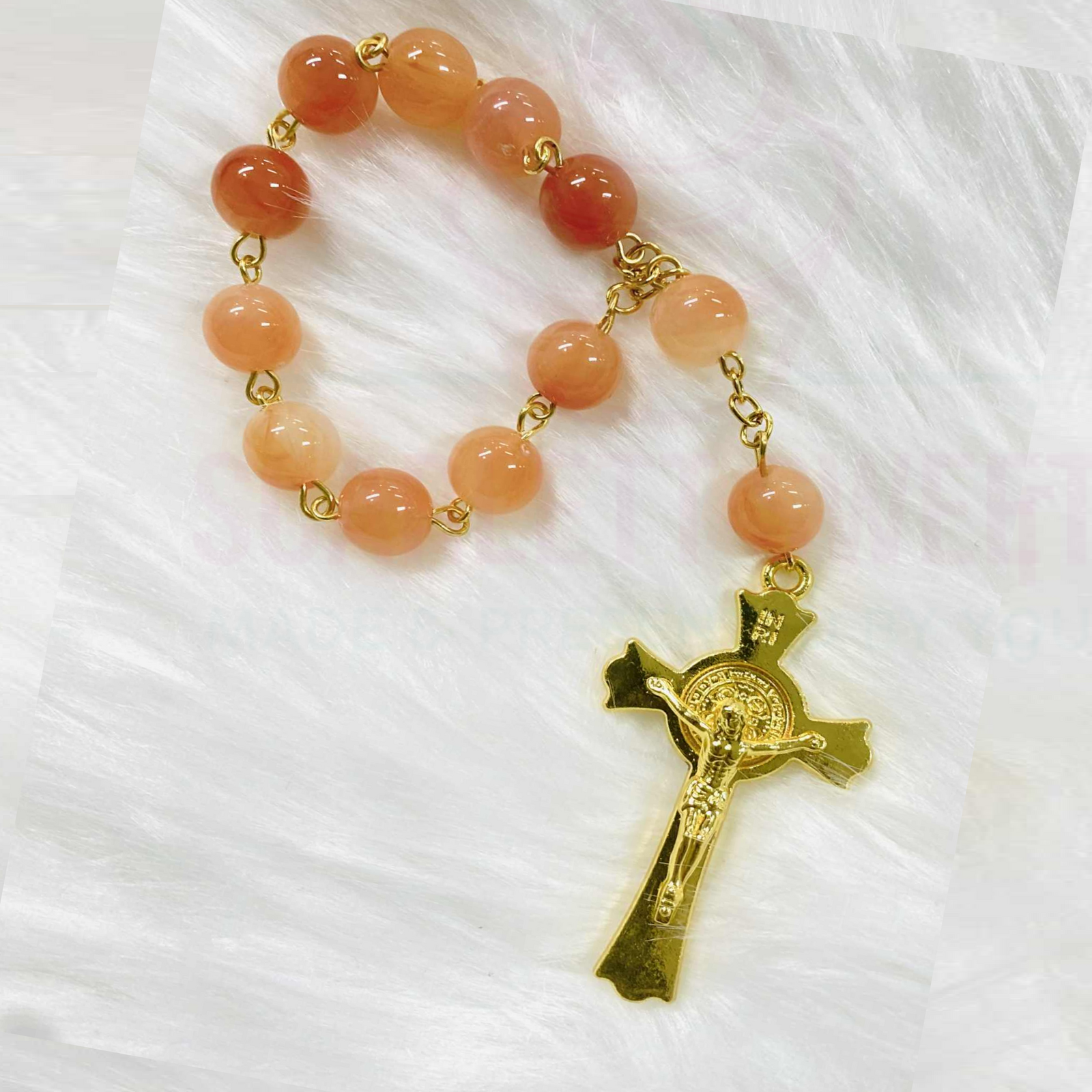 10mm amber jade bead racelet rosary with extra large gold cross.