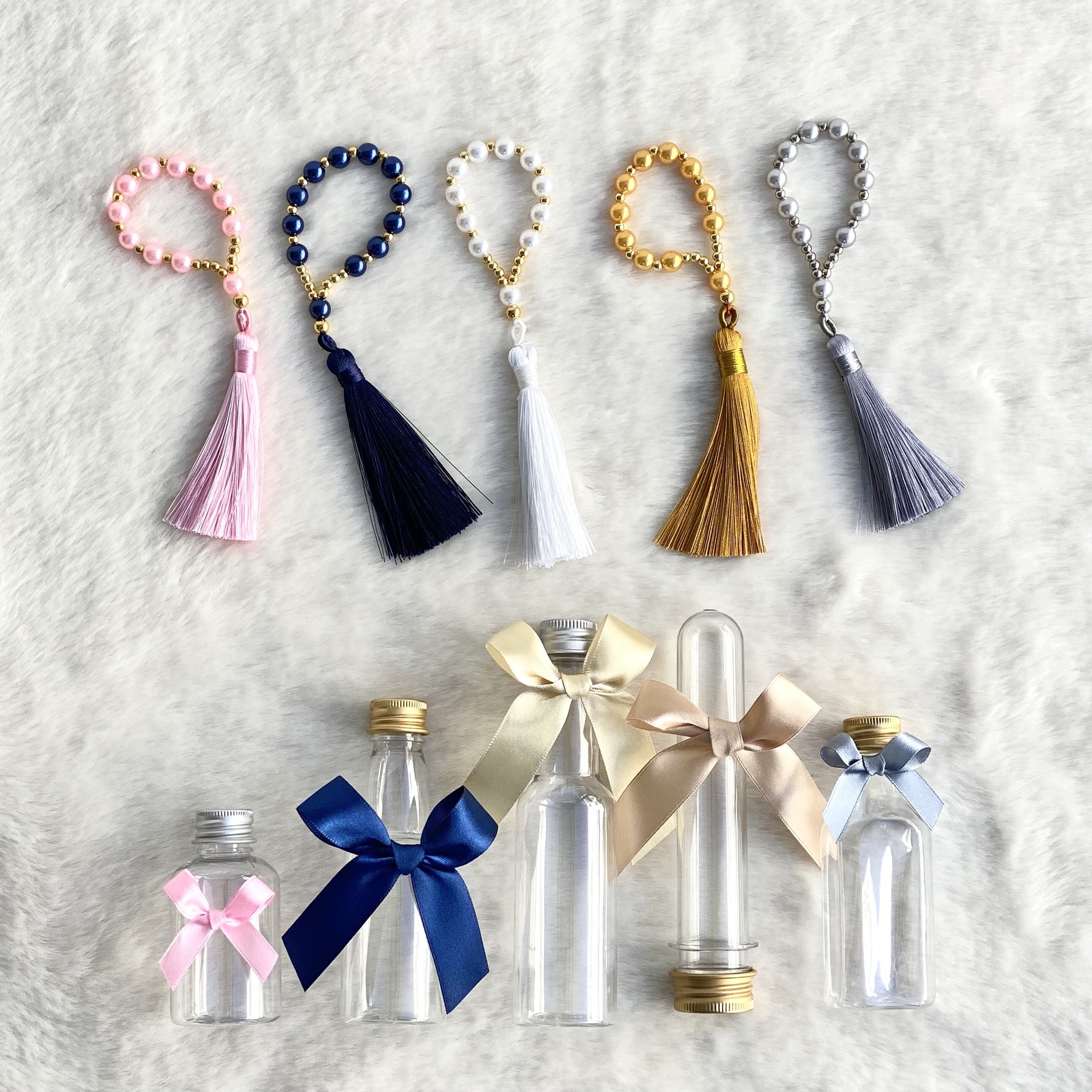11 pearl beads with tassel per piece.