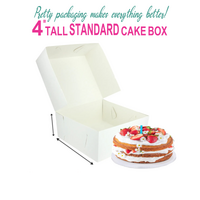 Pop Open cake boxes available in 4'' tall and 2.5'' tall options.