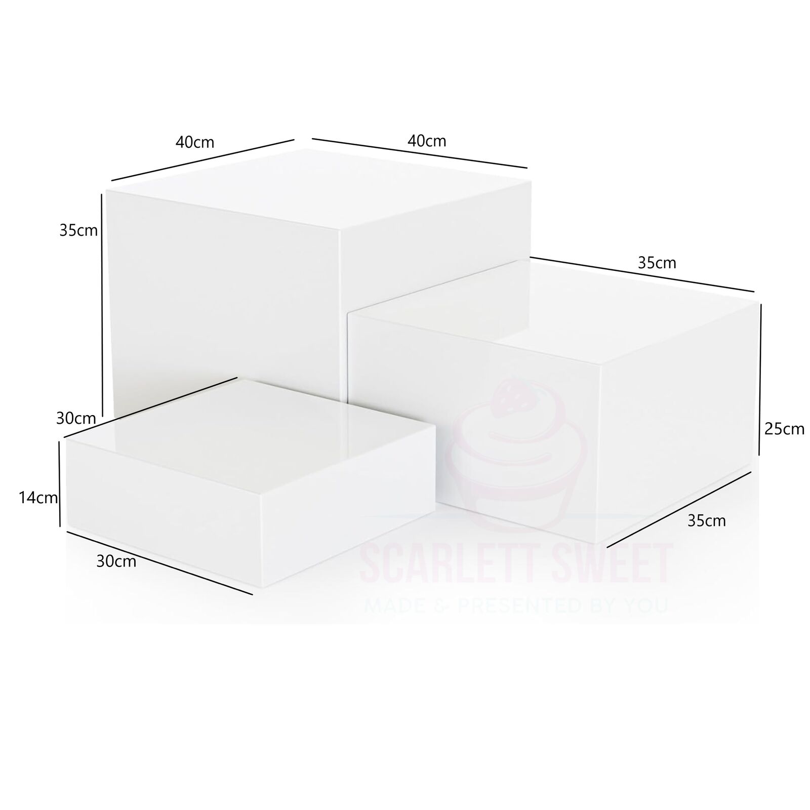3PC per set measuring 30x30x14cm, 35x35x25cm, 40x40x35cm.