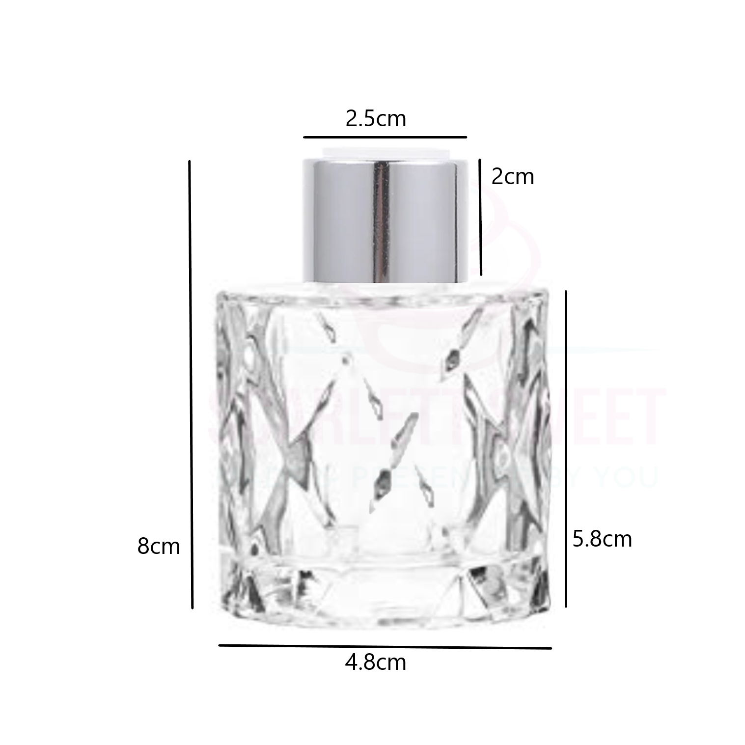 Diamond glass pattern details with screw on lid.