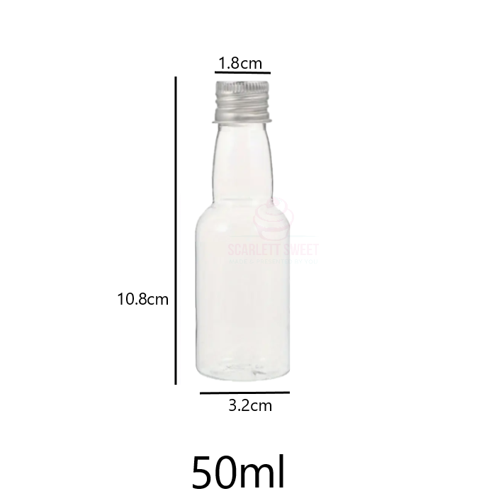 Clear plastic long neck bottle with aluminium gold screw lid.