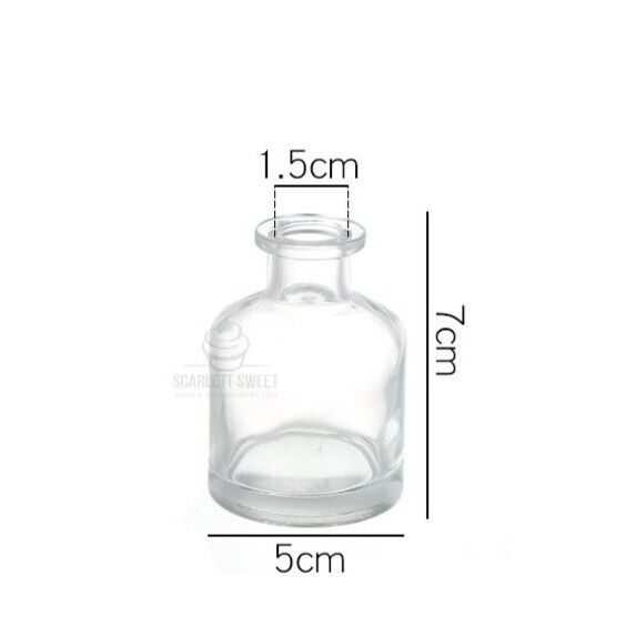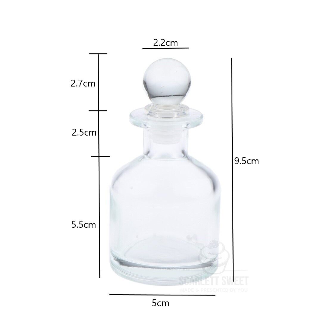 Round base measures 5cm x 10cm tall. 50ml volume.