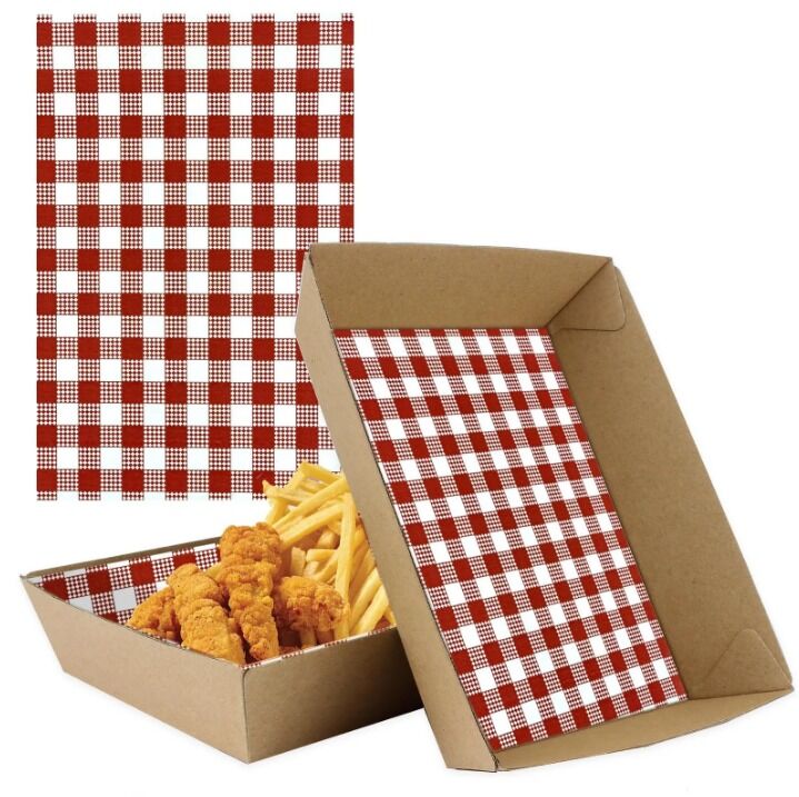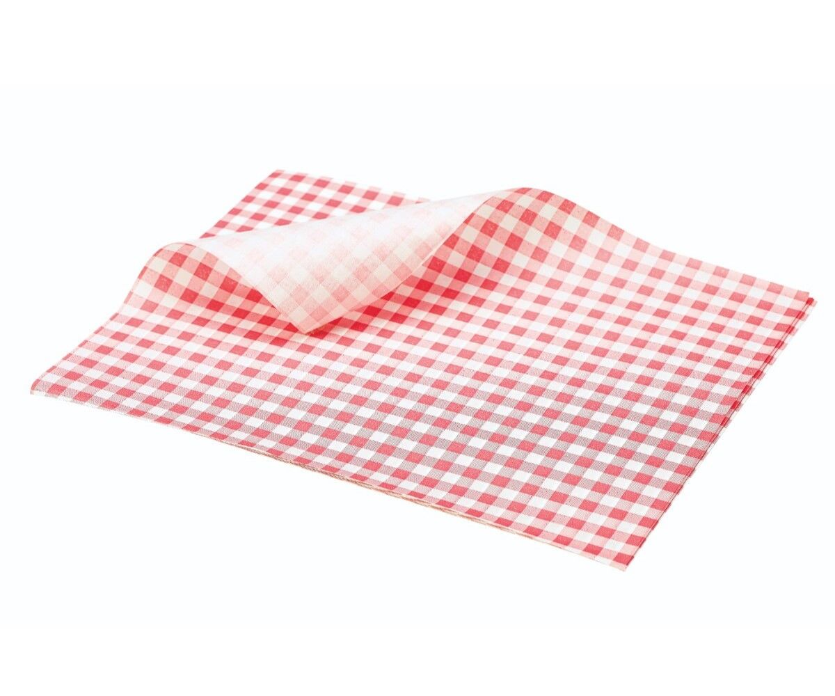 Extra thick quality food safe gingham printed greaseproof paper have been designed to fit our Kraft Katering brown and white boxes perfectly.