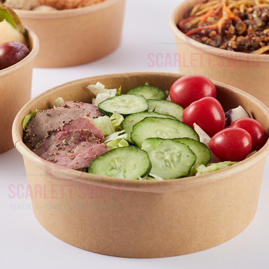 Brown 500ml craft bowl with PP lid (120sets per carton)