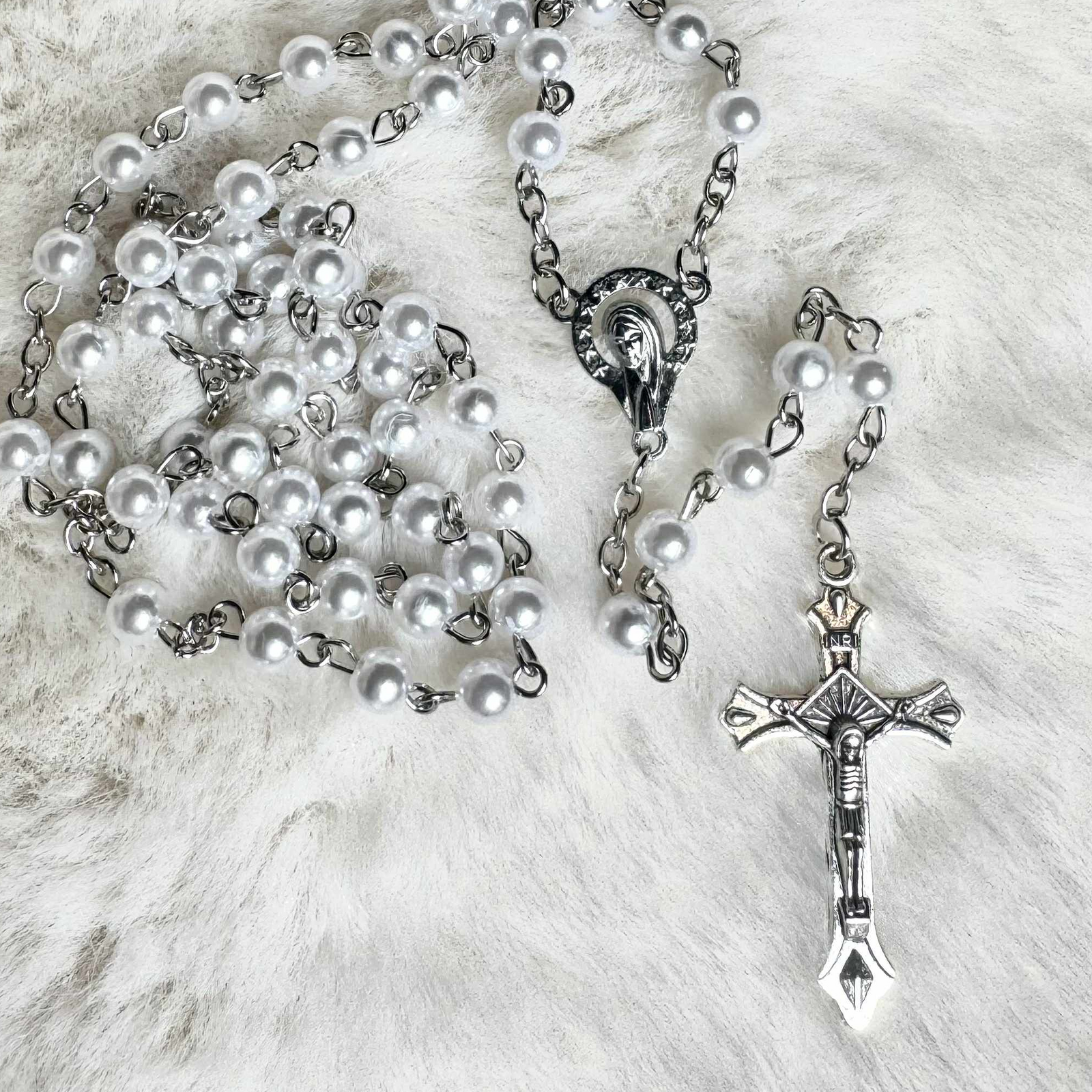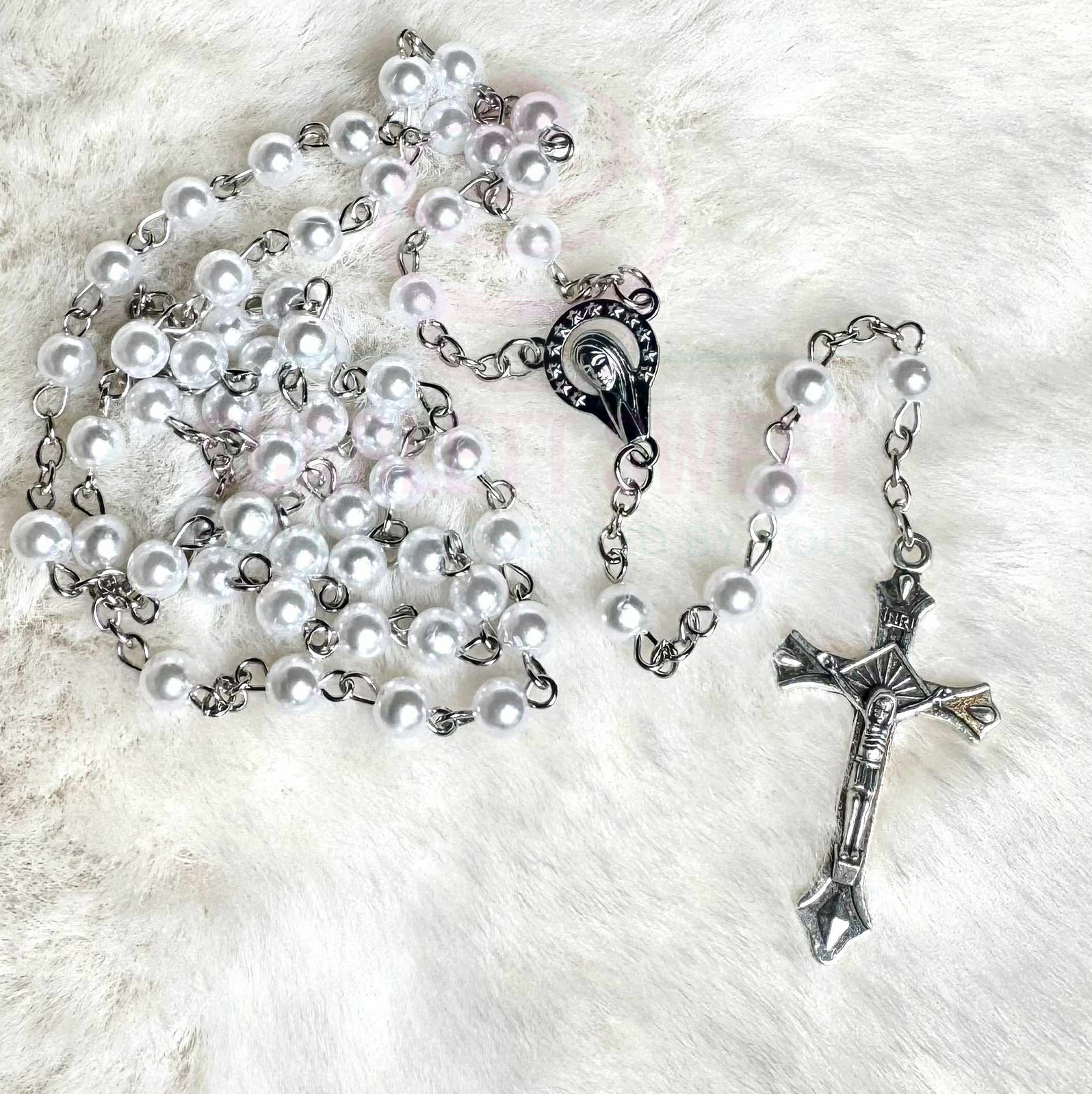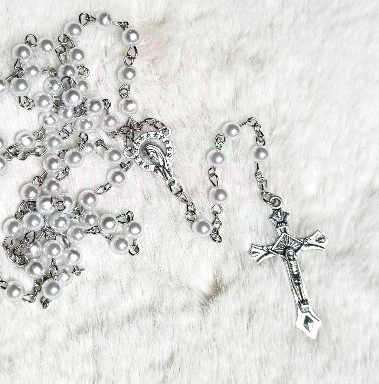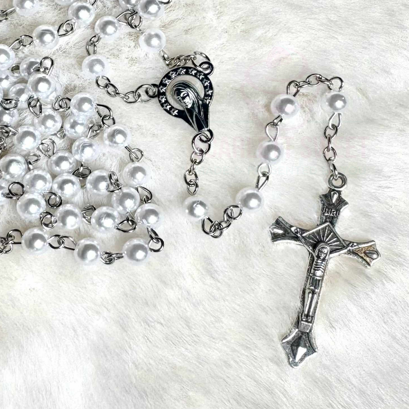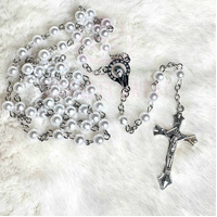 6mm pearl bead size, full rosary length 52cm.
