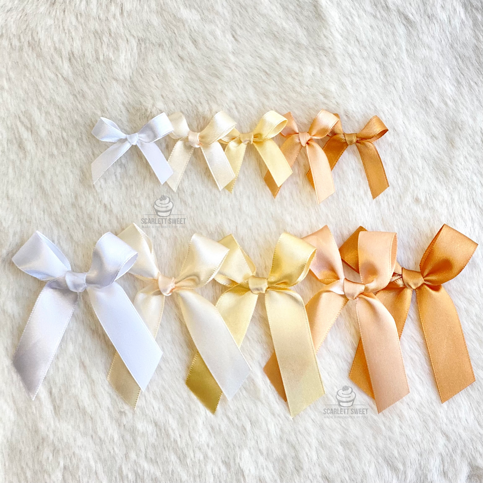 Satin bows have 16 different shades in each size; including nudes, pinks, blues, gold and silver.