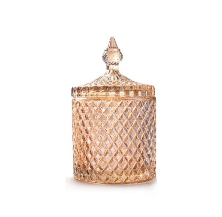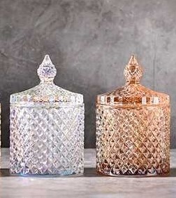 Medium Glass geo jar measures 8.5cm wide by 14cm high.